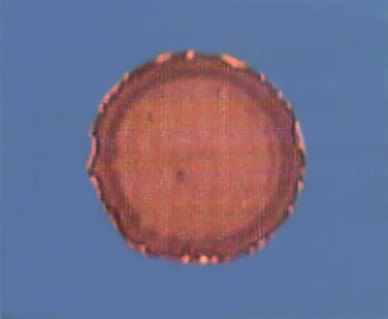图1a: 在使用 11.77 J/cm²的20ns 脉冲(光源波长为 1064nm)时因经过限度欠安而产生的镀膜故障