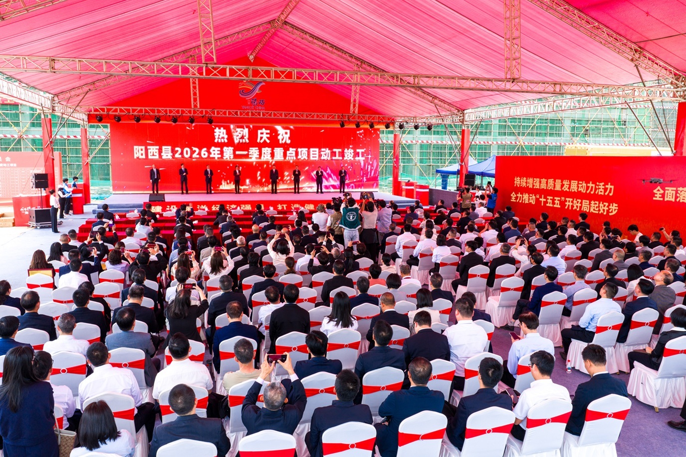 本次大会举行了阳西县第一季度重点名目动工、完竣庆典。任浩沿 摄