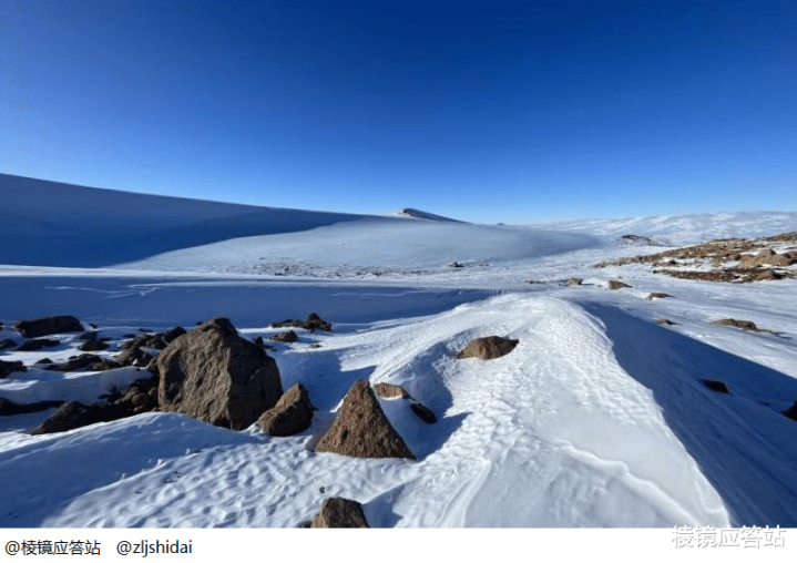 艾伦山蓝冰区从来不会积贮当代降雪,反而是数百万年前的冰层露馅在地表,在极地阳光底下泛着深幽的蓝光,就好像地球我方的日志本相通。