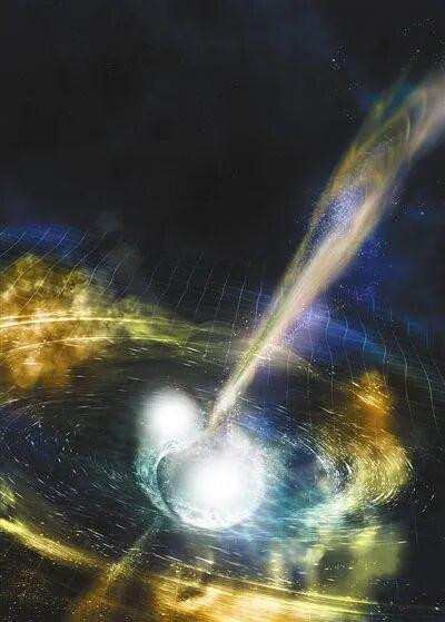 好意思国国度科学基金会、好意思国LIGO等提供的成果图涌现两个并合中的中子星。图片