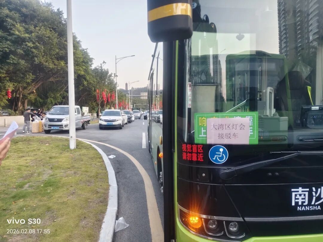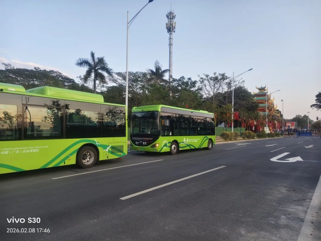 南沙湾公交总站旁(聚集2号门临近泊车场)上车点至滨海公园大门口(聚集1号门临近泊车场),每二极端钟一班,上车二元,接驳时代17点到23点。