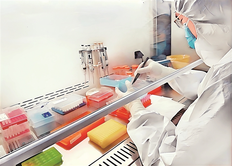 考古东说念主员正在作念古DNA检测。作家供图